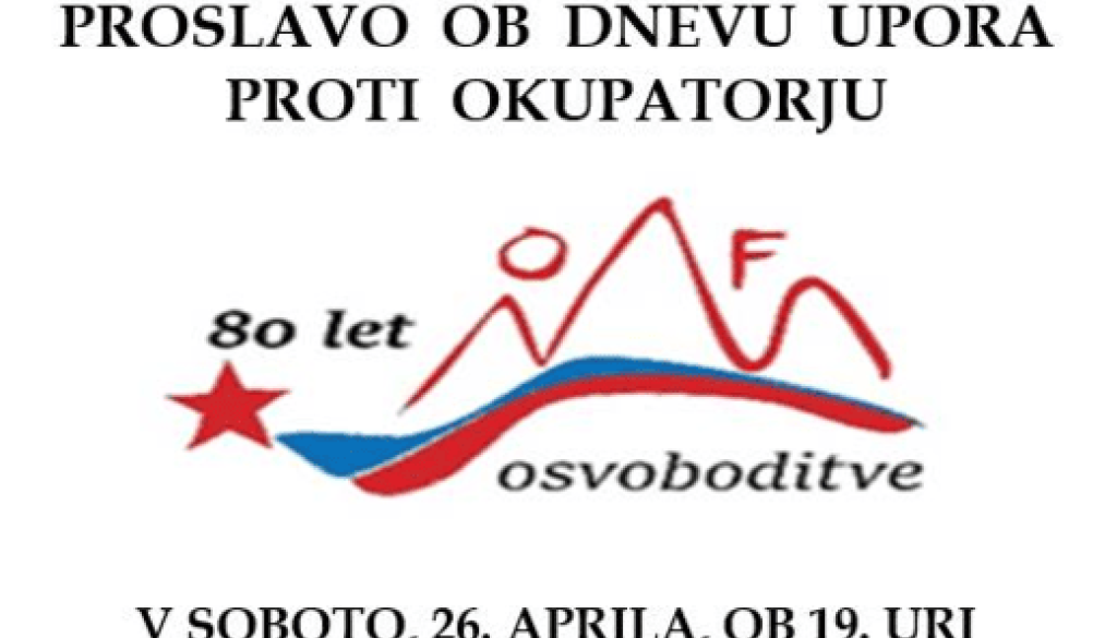 Vabljeni na proslavo ob dnevu upora proti okupatorju, ki bo v soboto, 26. aprila, ob 19. uri v KKC Dolenjske Toplice.