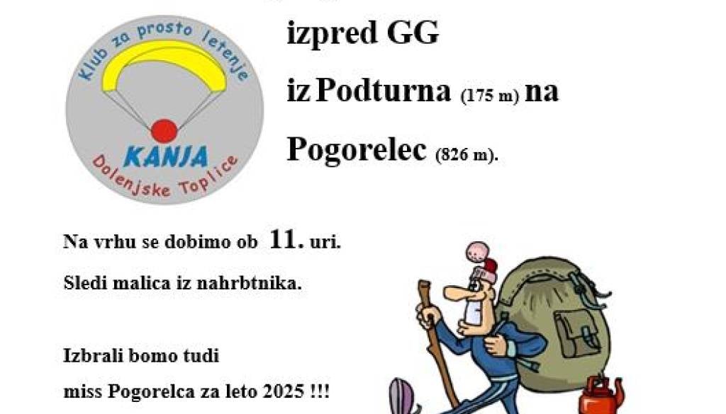 Vabljeni na tradicionalni pohod na Pogorelec. Odhod bo ob 9:00 s parkirišča v Podturnu.