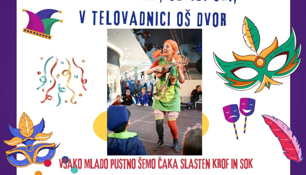 Mamice, oÄki, tete, strici, bratci, sestrice, ... pripeljite otroke na Dvor, na tradicionalno pustno rajanje, ki bo v nedeljo, 2. marca 2025, s priÄetkom ob 15. uri, v telovadnici Osnovne Å”ole Dvor.