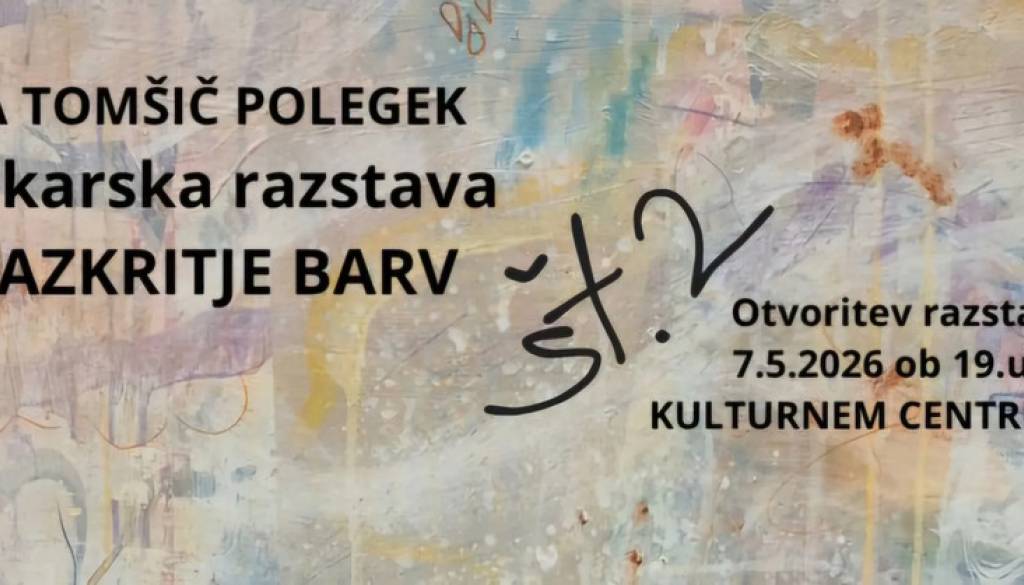 Kulturni center SemičKulturni center Semič vas vabi na odprtje slikarske razstave Nine Tomšič Polegek z naslovom “RAZKRITJE BARV” v četrtek, 7. maja 2026, ob 18.00 v Kulturnem centru Semič.