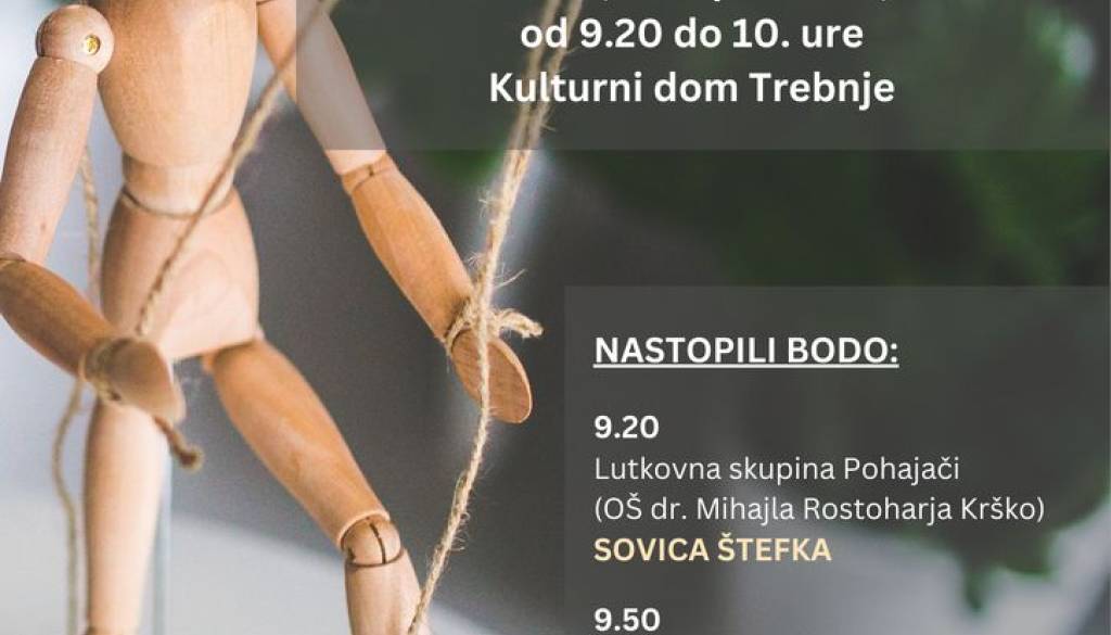 Kulturni dom TrebnjeVljudno vabljeni na Regijsko srečanje lutkovnih skupin 2025, ki se bo odvilo v sredo, 16. aprila 2025, med 9.20 in 10. uro v Kulturnem domu Trebnje.