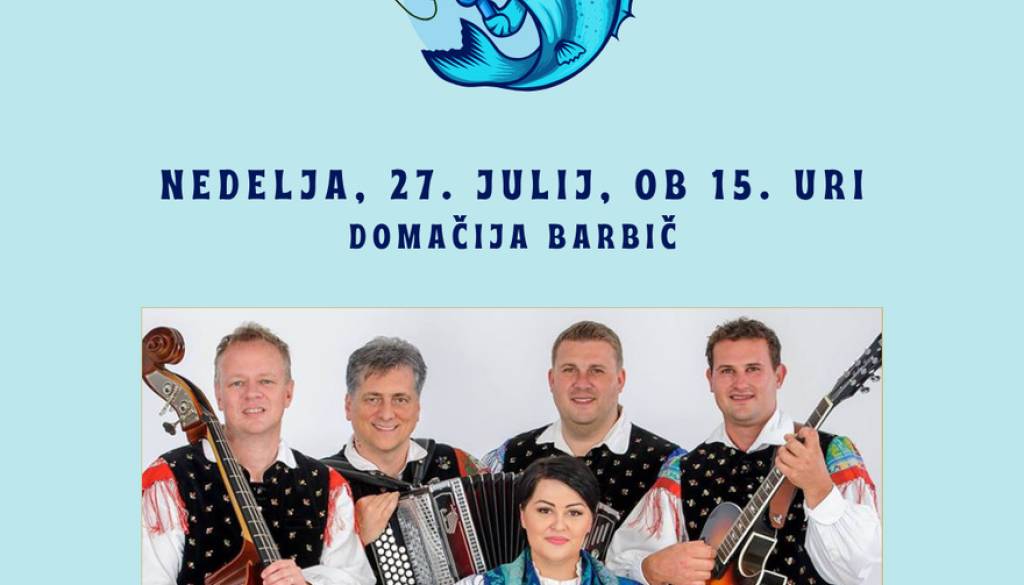 Domačija BarbičTradicionalni Ribiški piknik bo v nedeljo 27. julija, ob 15. uri na domačiji Barbič. Zabaval vas bo Ansambel Petra Finka, vabljeni!