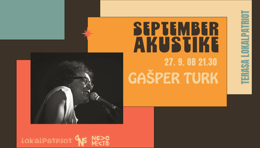 Vabimo vas, da z nami ponovno odprete sezono ob izbranih glasbenikih, ki bodo s svojimi zgodbami in akordi poskrbeli, da bo september spet zvenel akustično. Gašper Turk je kitarist, pevec in avtor pesmi, ki svojo ustvarjalno pot gradi med iskrenimi besedili in ujetimi melodijami vsakdana.