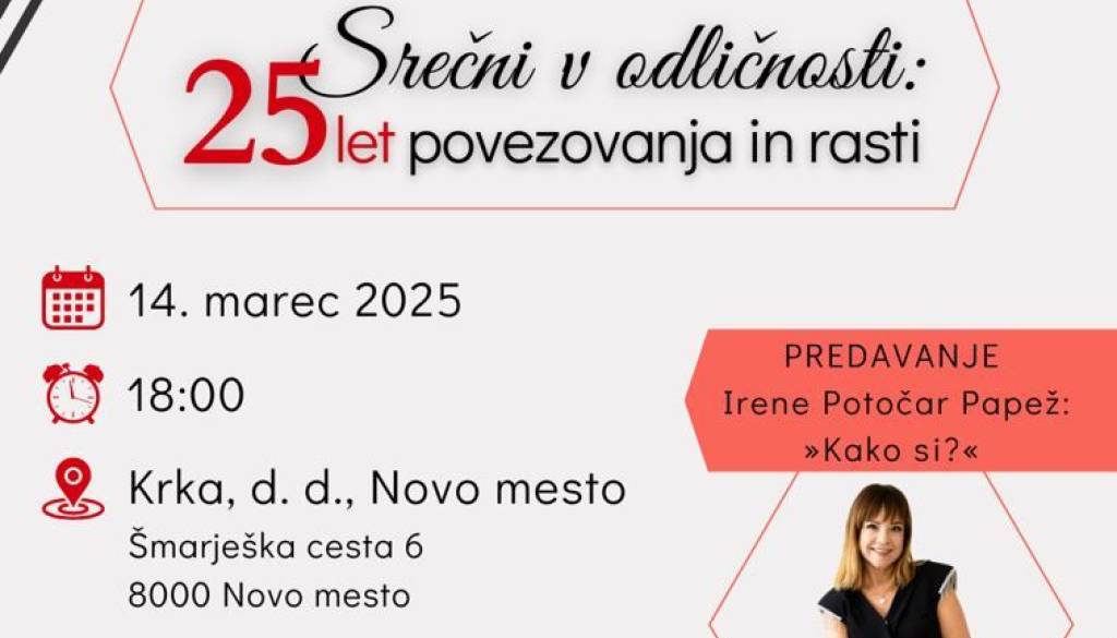 Dvorana Krka Novo mestoPovabljeni na 26. skupščino in praznovanje 25. obletnice Kluba, ki bo v petek, 14. marca 2025, ob 18. uri, v Dvorani Krka (Šmarješka c. 6, 8501 Novo mesto).