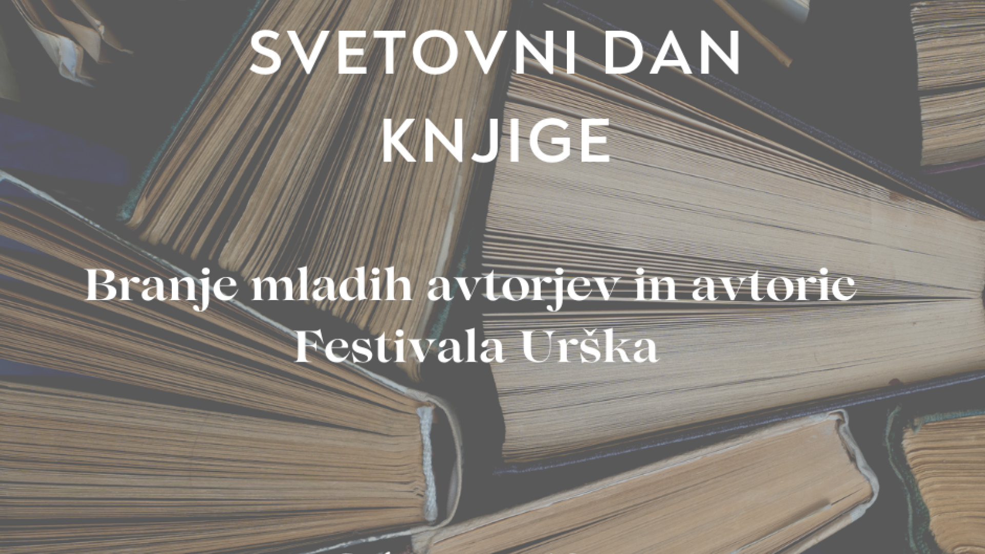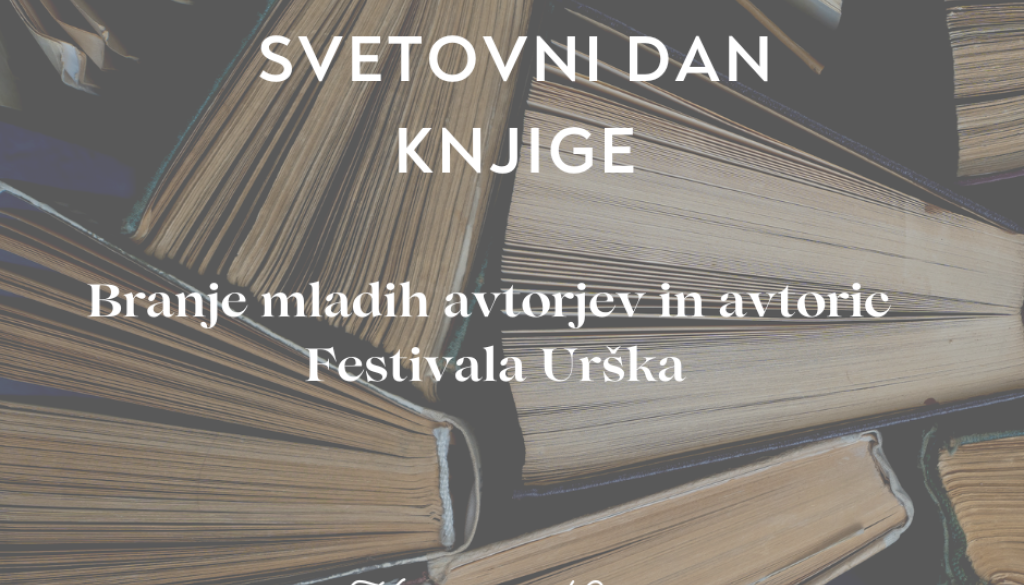 | | || | | Na svetovni dan knjige vas vabimo v Knjigarno Goga, kjer bomo v ospredje postavili literarno ustvarjanje mladih avtorjev, ki so v letu 2024 in 2025 sodelovali na Festivalu mlade literature Urška.