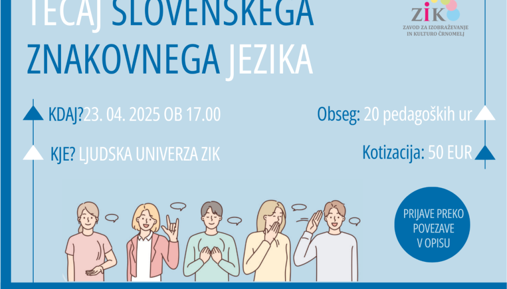 ZIK ČrnomeljVpis na Tečaj Slovenskega znakovnega jezika