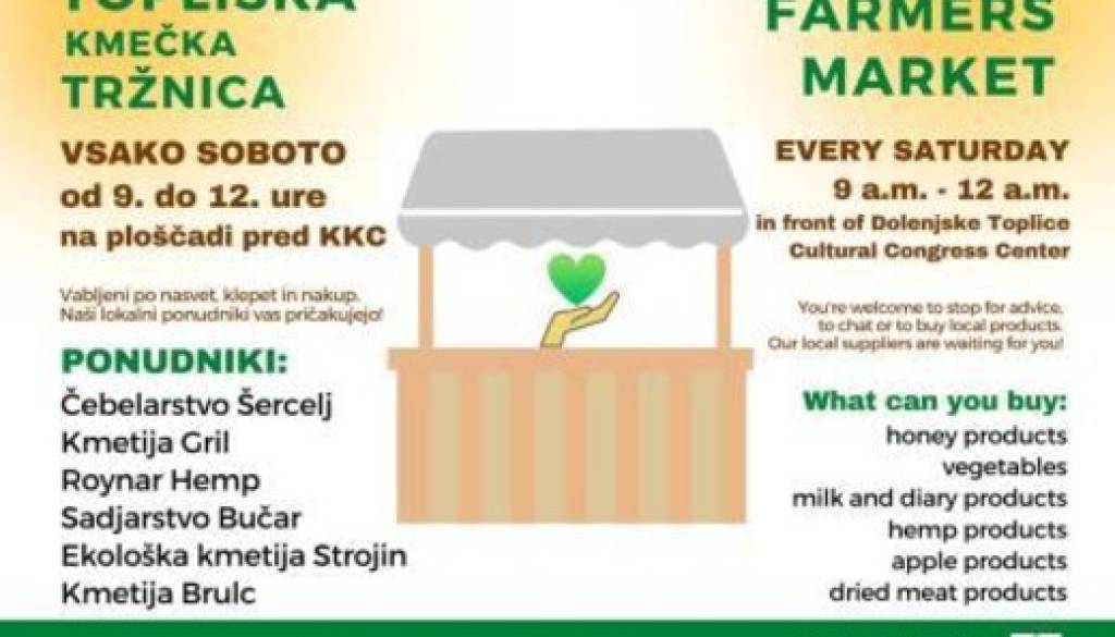 Vsako soboto vabljeni na topliško kmečko tržnico na ploščadi pred KKC Dolenjske Toplice med 9. in 12. uro.
