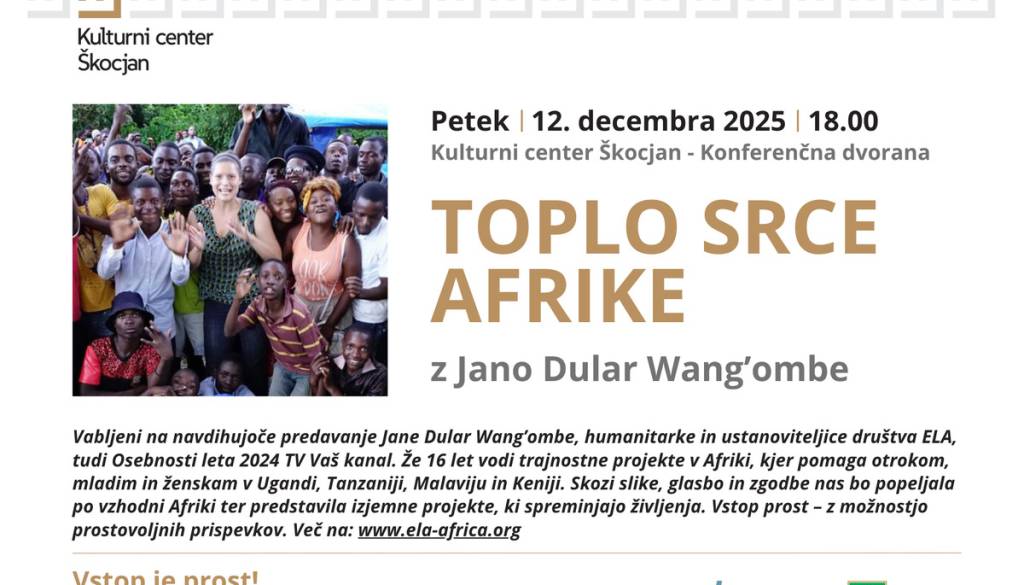 Kulturni center Škocjan🔥 TOPLO SRCE AFRIKE – navdihujoče predavanje v Škocjanu! 🔥