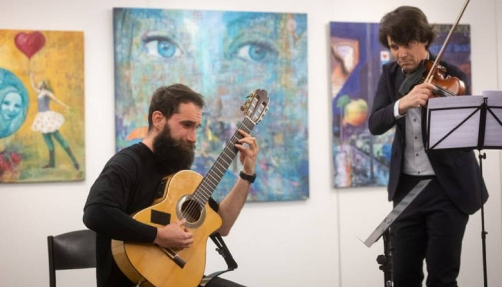 V avtorskem projektu The Art of Ten Strings (Umetnost desetih strun) virtuozni slovenski kitarist Mihael Hrustélj in uveljavljeni godalni improvizator Marijan Dović združita ustvarjalne moči kot skladatelja in kot interpreta lastne glasbe. Projekt je zasnovan povsem akustično in živo, brez dodatkov in nasnemavanja – kot sproščena soigra dveh glasbenikov, ki ni v celoti vpeta v vnaprej komponirani kalup. Vsak od članov dua je prispeval nekaj lastnih skladb, ki se slogovno gibljejo med džezom, latinom in glasbami sveta, zares pa zaživijo šele v improvizacijski interakciji. Zvoki desetih strun – violino pri nekaterih skladbah nadomesti temnejši, bolj ekspresivni zvok viole – so lahko zapeljivo intimni in komorni, a vseeno glasbenika občasno popeljeta poslušalca tudi v svet živahnejših ritmov, kjer glasbili dramatično pokažeta svojo perkusivno plat.
