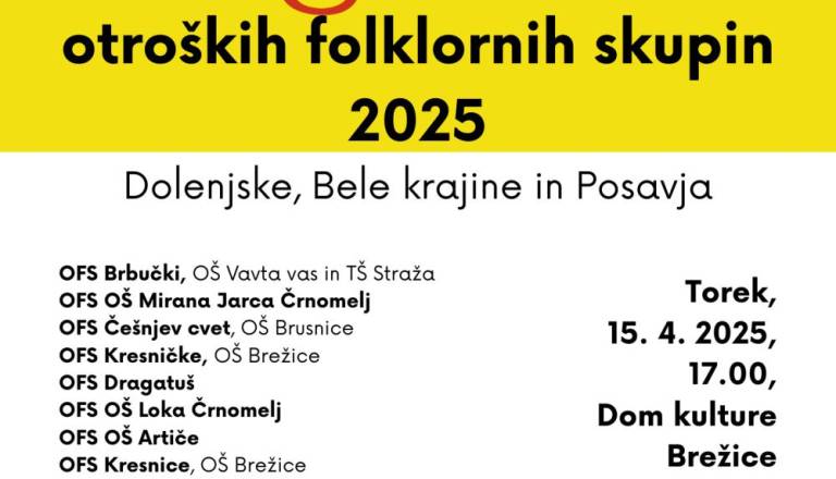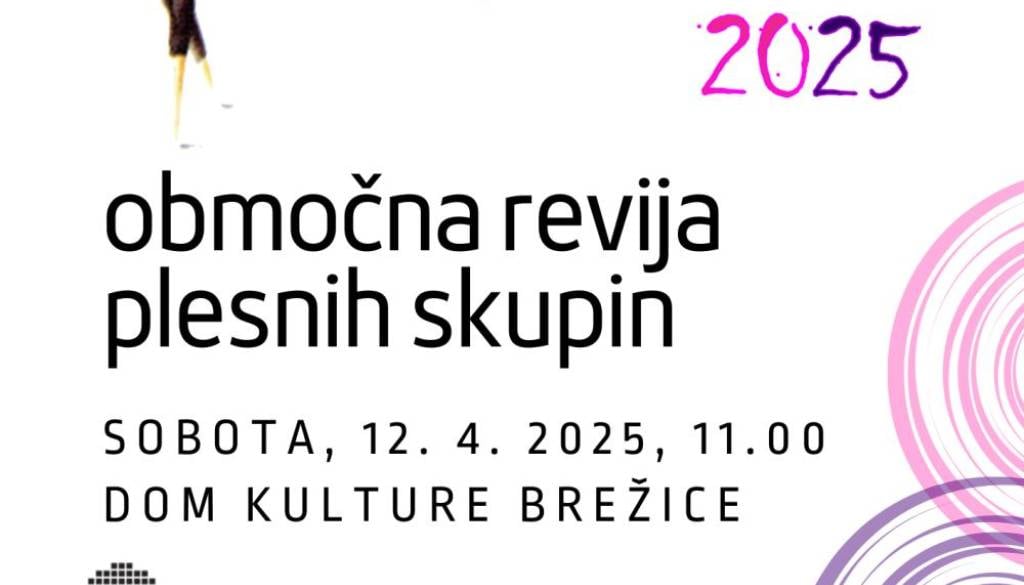 Dom kulture BrežiceSobota, 12. 4., ob 11.00 v Domu kulture Brežice: V plesnem vrtincu 2025 – območna revija plesnih skupin