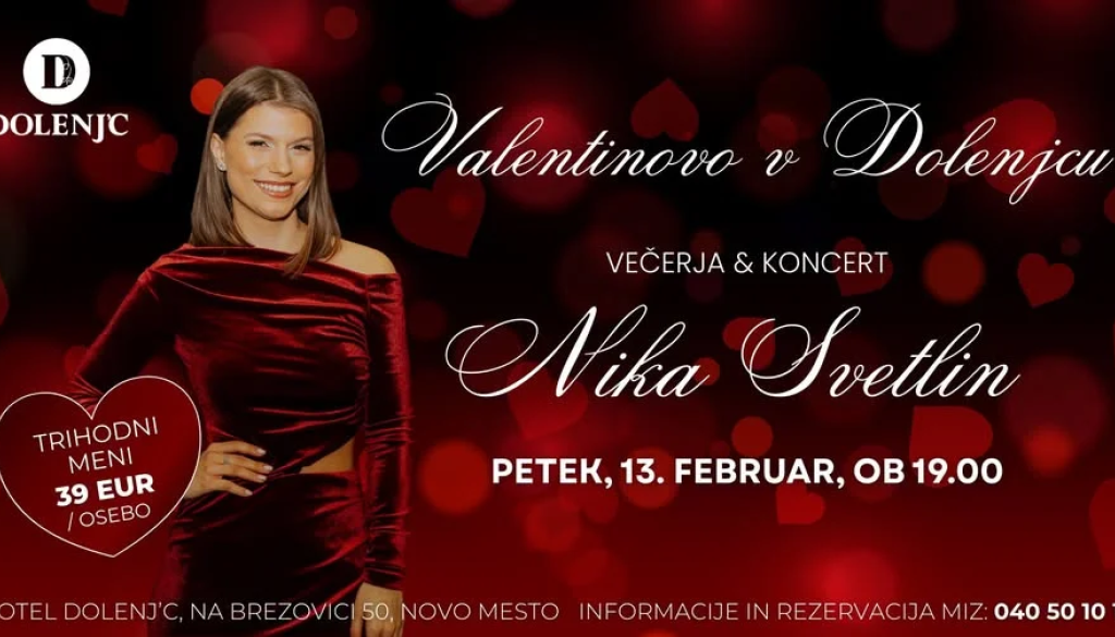 Hotel Dolenj’c Novo mestoZačnite valentinov vikend z večerom, posvečenemu ljubezni, okusom in glasbi. V petek, 13. 2. 2026, ob 19. uri vabljeni na čaroben večer, kjer se bosta prepletla vrhunska kulinarika in nežna glasbena spremljava.