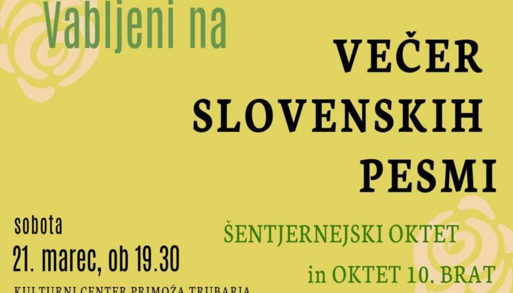 VEČER SLOVENSKIH PESMI – Šentjernejski oktet in Oktet 10. brat