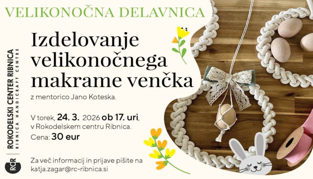 Delavnica bo potekala v torek, 24. 3. 2026 ob 17. uri, v Rokodelskem centru Ribnica.