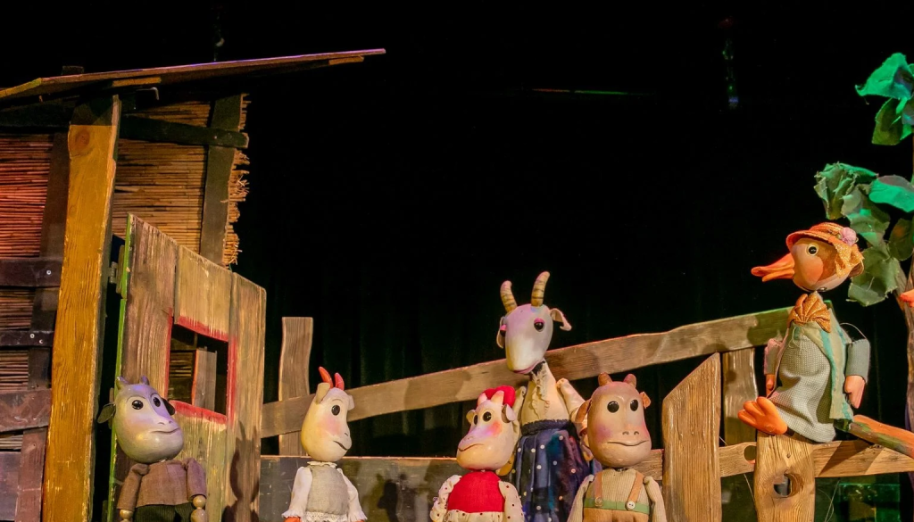 Predstava Volk in kozlički je nastala po znani Grimmovi (Jacob Grimm (1785–1863) in (Wilhelm Grimm (1786–1859)) pravljici Volk in sedem kozličkov. Predstava je bila leta 2001 režijski prvenec Roberta Waltla, takratnega diplomanta igre na ljubljanski AGRFT, kasnejšega igralca Lutkovnega gledališča Ljubljana ter ustanovitelja in direktorja Mini teatra. Likovna zasnovo je pripravil slikar Daniel Demšar, ki se ob likovnem ustvarjanju ukvarja z oblikovanjem scen, kostumov in lutk za vsa vidnejša lutkovna gledališča v Sloveniji. Je avtor številnih človeških, živalskih in domišljijskih bitij, s katerimi nadgradi besedna sporočila lutkovnih predstav. Glasba izhaja iz etnoloških motivov in jo je na sodoben način obdelal Peter Kus, skladatelj, ki je z glasbo opremil več plesnih, otroških predstav in nemih filmov, nekdanji vodja skupine Pavel Vlasov sekstet in član etno skupine Tolovaj Mataj.