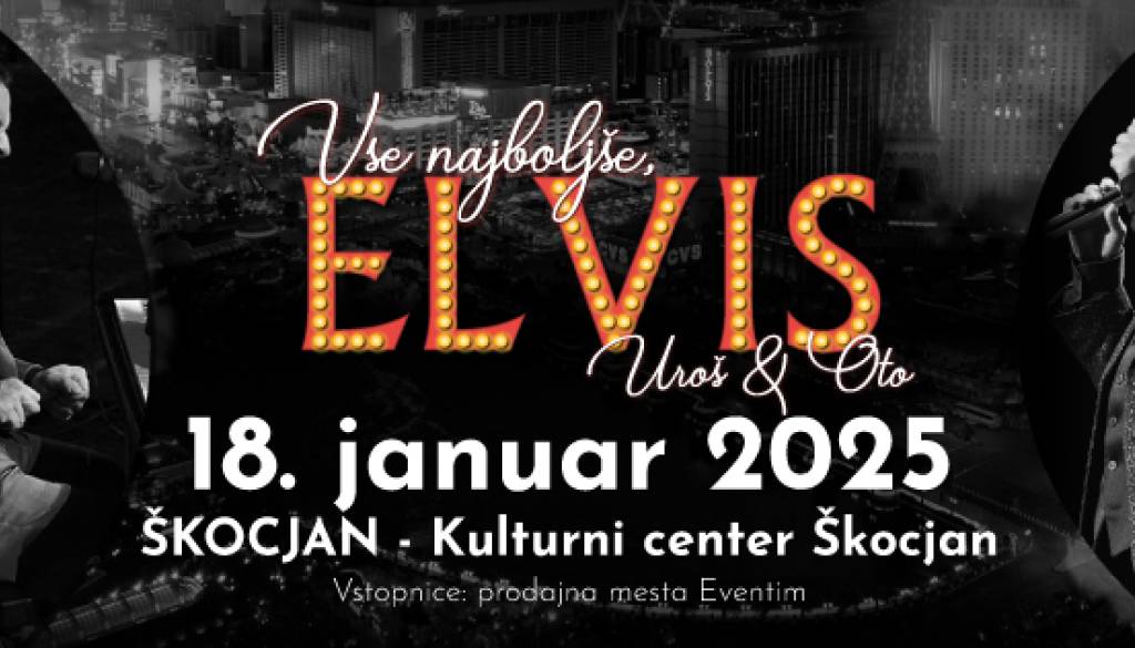 Vsi vemo, da je Elvis še vedno živ in da bodo njegove pesmi za vekomaj zapisane v naših srcih. 8. januarja 2025 bi Kralj praznoval svoj 90. rojstni dan, zato vas vabimo, da v družbi Ota Pestnerja in Uroša Perića skupaj praznujemo ob nepozabnih melodijah in hitih kot so “Can’t Help Falling in Love”, “Suspicious Minds”, “In the Ghetto”, "Hound Dog" in drugih ...