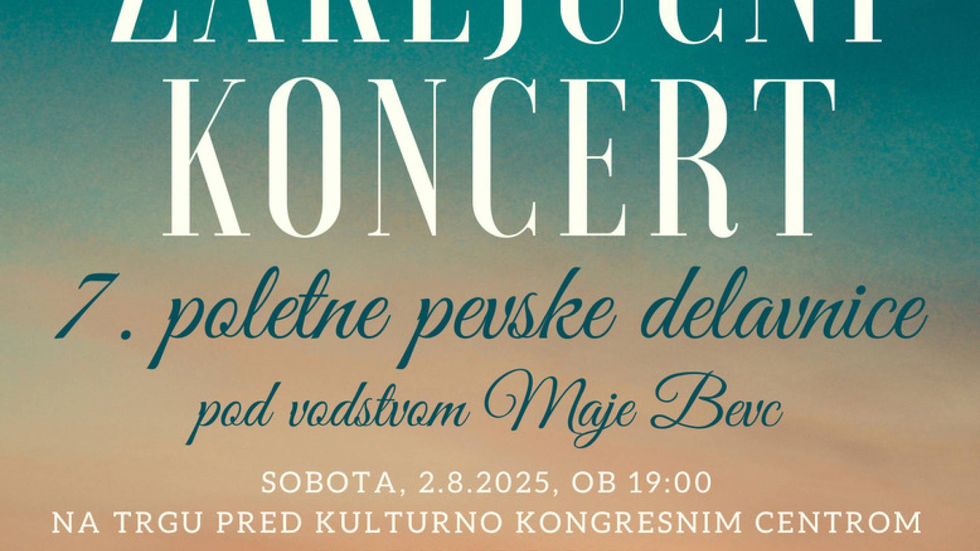 Ploščad pred KKC Dolenjske TopliceVabljeni na zaključni koncert 7. poletne pevske delavnice Maje Bevc, ki bo v soboto, 2. avgusta, ob 19. uri na ploščadi pred KKC Dolenjske Toplice. Vsi ljubitelji glasbe dobrodošlI!