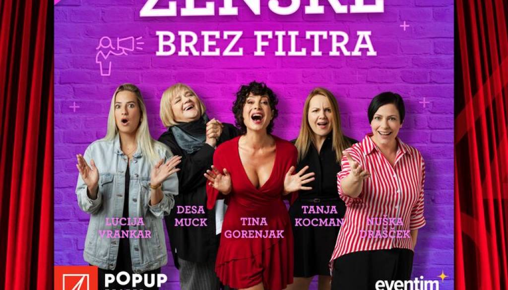 Vsaka od teh 5 žensk prinaša svojo zgodbo in izkušnje, vse pa združuje nefiltriran pogled na današnji svet, ki je pogosto prekrit s filtri. Na odru vas bo teh 5 žensk s vpogledom v svoje življenje in razmišljanje zagotovo nasmejalo do solz, filtre pa bodo prihranile za Instagram.