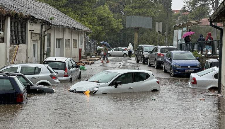 Ekstremne vremenske razmere na Hrvaškem: Voda poplavila lokale ter ulice in ohromila promet