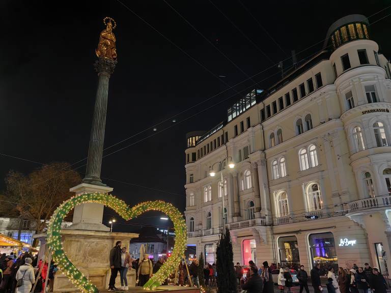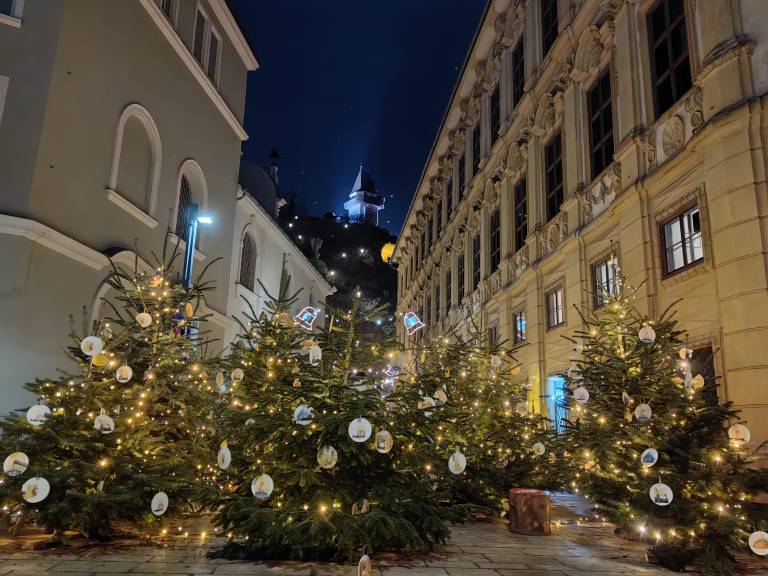 Za ljubitelje razgledov pa je priporočljiv vzpon na grajski hrib (Schlossberg), od koder se razprostira čudovit pogled na praznično okrašeno mestno jedro.