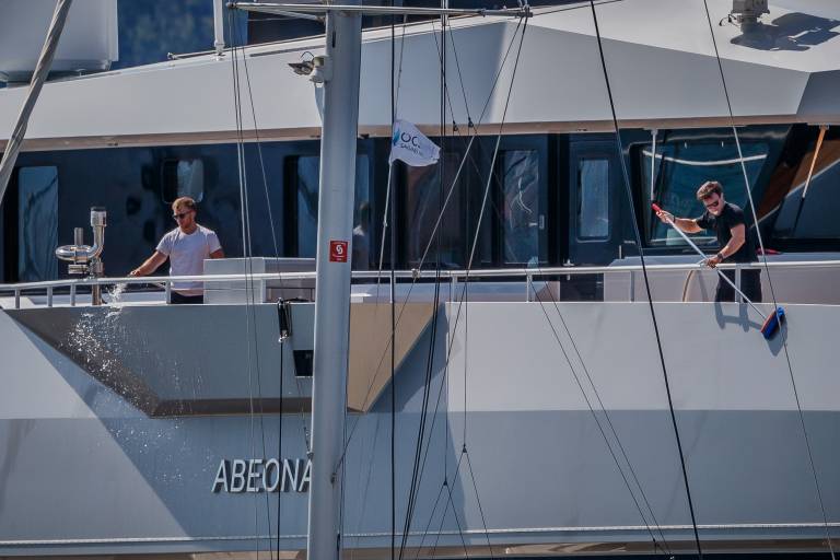 Koru nikoli ne pluje sama. Ob njej je vedno zasidrana še dodatna ladja Abeona, največja podporna jahta, kar jih je bilo kdaj zgrajenih. Služi kot mobilna garaža za helikopter, avtomobile in dodatno opremo, hkrati pa zagotavlja dodatno varovanje.