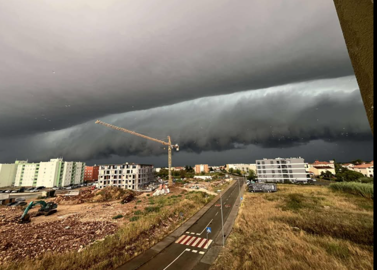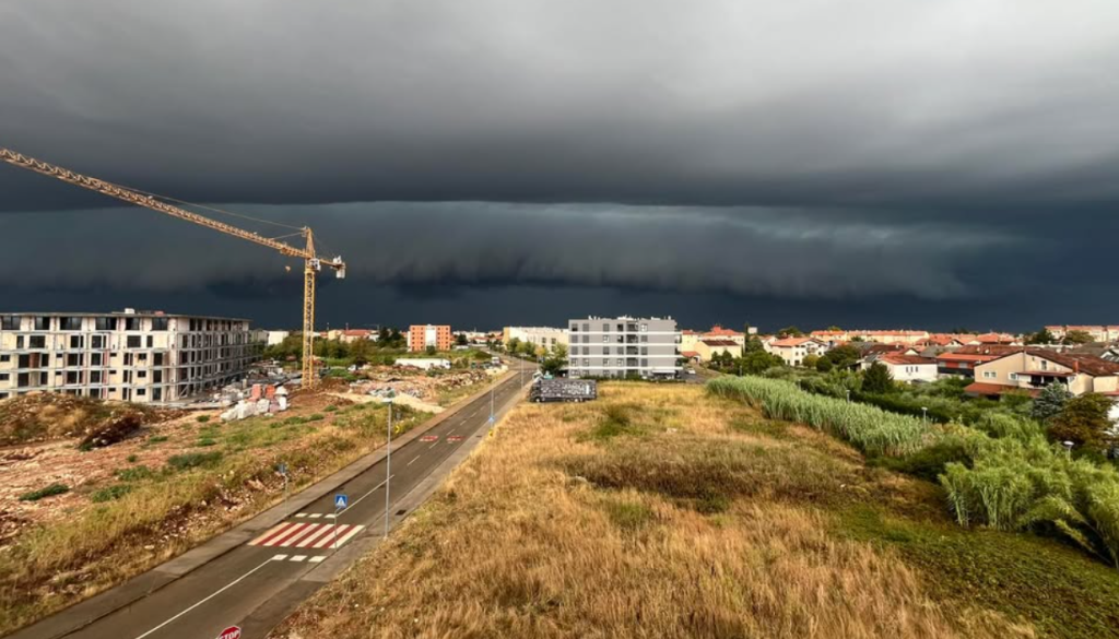 Z zahoda prihaja spektakularna obsežna oblačnost, ki bo najprej zajela severni Jadran in Gorsko Hrvaško. Tam meteorologi napovedujejo močne plohe z grmenjem, ki jih lahko spremlja tudi močan veter.