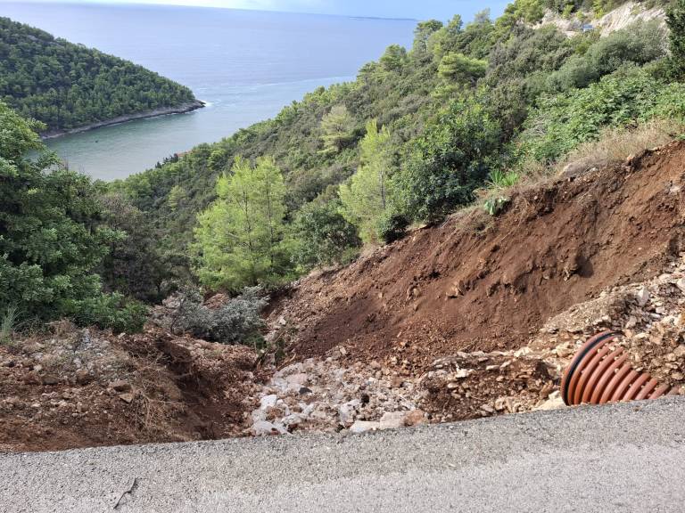 V ulici Tri sulara v središču Korčule je zalilo vse objekte, vodostaj je segal skoraj do kljuk na vratih. Hudournik je spremenil tudi podobo velikega zaliva Pupnatska luka. Zaradi plazov je do nadaljnjega zaprta cesta po pristanišča Pupnat.