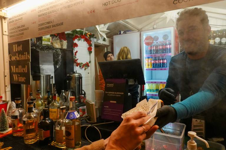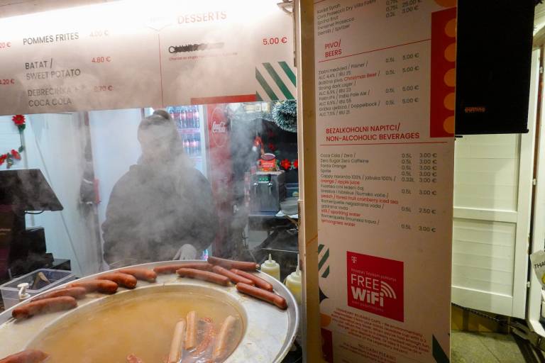 Klobasice, ki veljajo za nepogrešljiv del adventnega doživetja, stanejo sedem evrov za kos, medtem ko so hrenovke nekoliko cenejše – štiri evre.