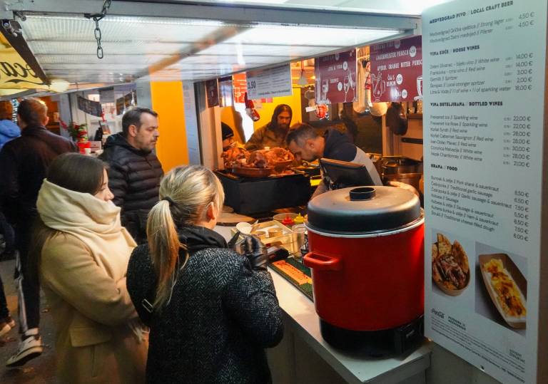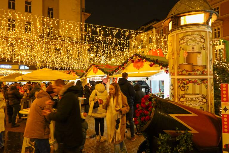 Poleg vizualnega čara mesto ponuja tudi kulinarične užitke. Praznično obarvana ponudba je najbolj bogata na Strossmayerjevem trgu in pred hotelom Esplanade.