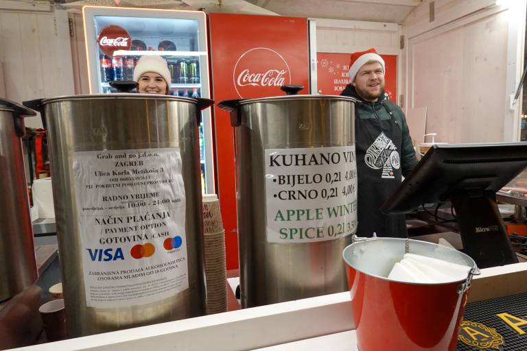 Za kozarček kuhanega vina je treba odšteti približno tri evre in pol, za otroški čaj pa dva evra.