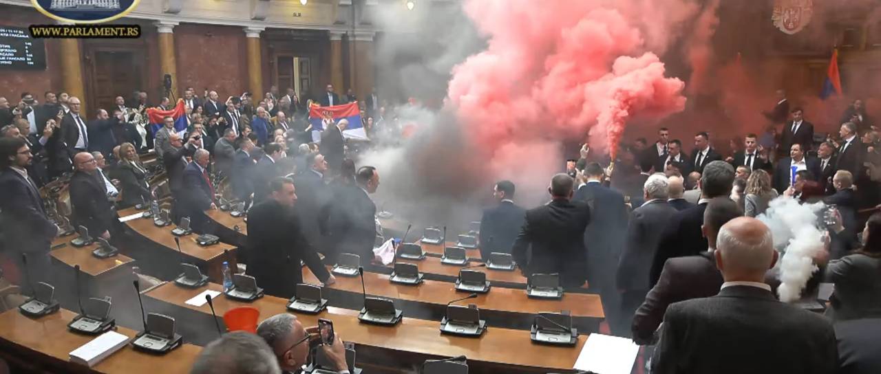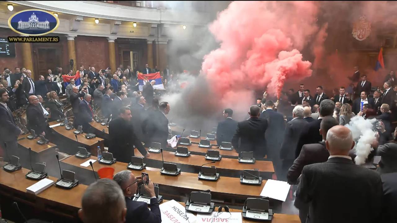 Redna parlamentarna seja se je začela ob 10. uri s petjem himne, do incidentov pa je prišlo malo po 11. uri. Na kraju dogodka je policija, pred poslopjem parlamenta pa se zbirajo študenti in drugi državljani, poroča portal N1 Srbija.