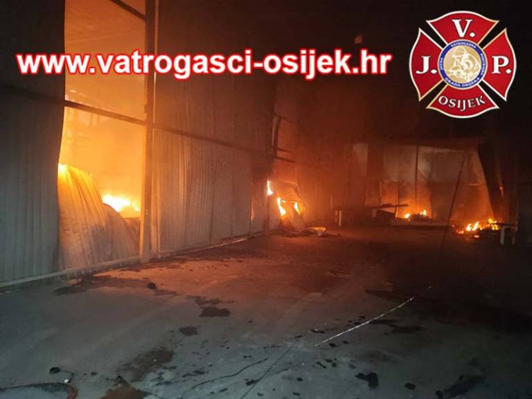 Policija iz Osješko-baranjske županije je danes ob 3.06 prejela obvestilo, da gorijo skladišča podjetij ob južni obvoznici v Osijeku.