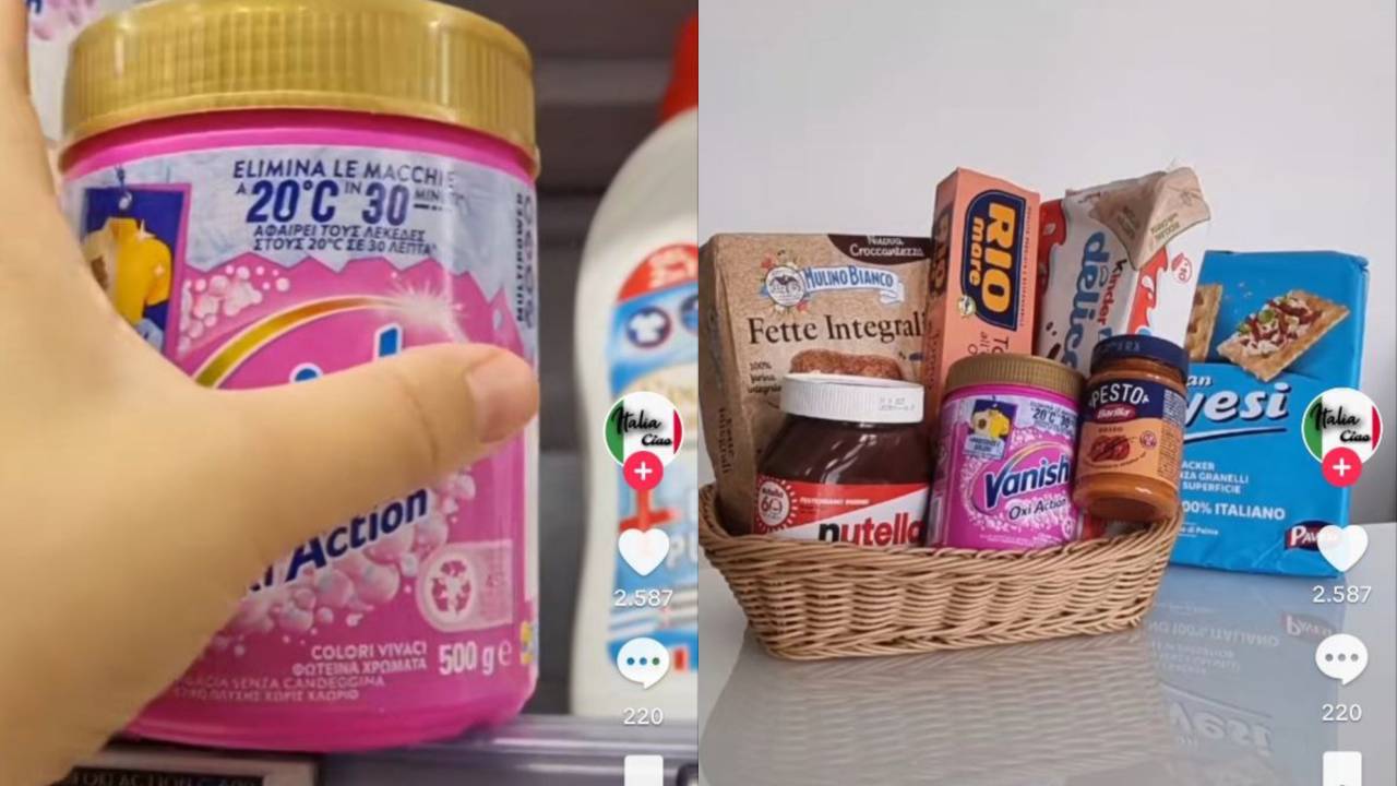 Tako so pred dnevi objavili posnetek primerjave cen za šest izdelkov. Nakupila je namaz Nutella, tunino Rio mare, krekerje, čokoladni biskvit Kinder delice, prašek za belo perilo in odstranjevanje madežev Vanish, pesto Rosso in paket prepečenca.
