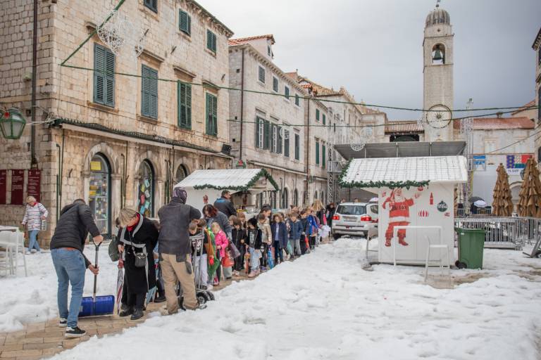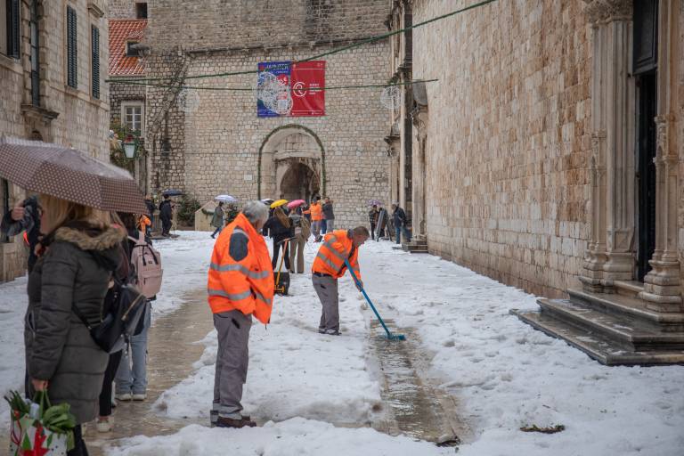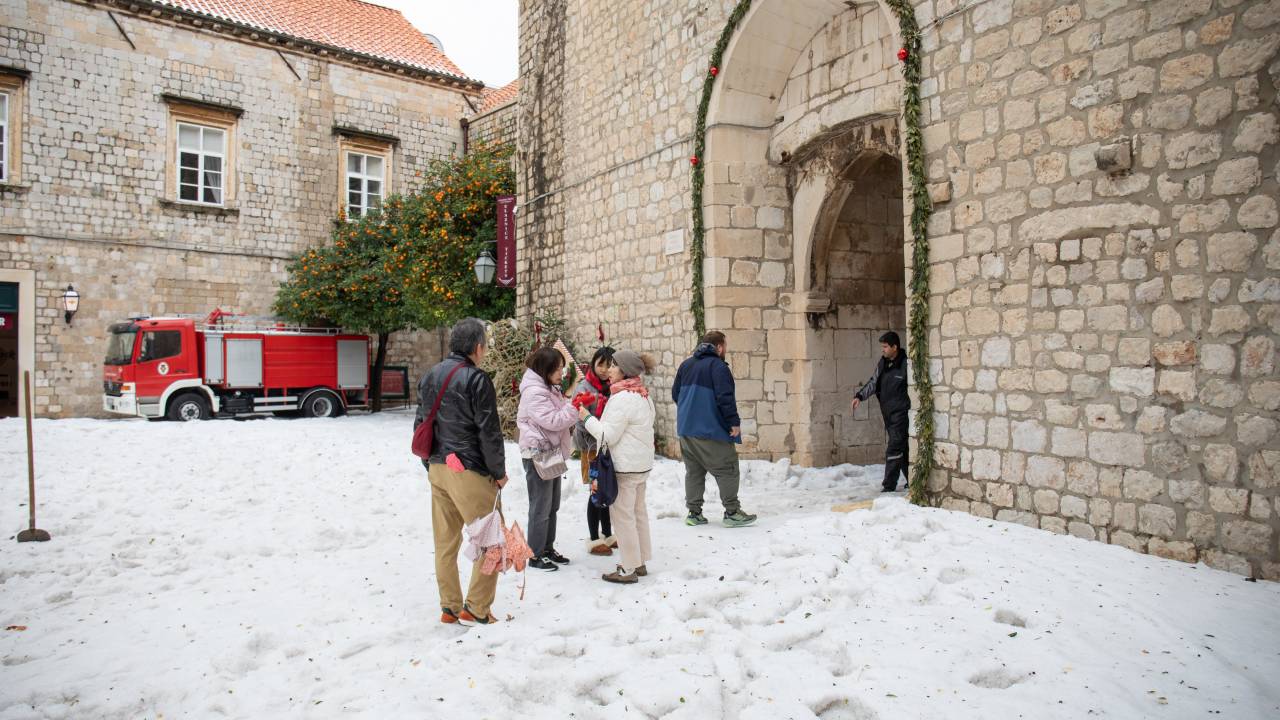 Dubrovnik je danes pobelila toča, ulice starega mestnega jedra pa so zaradi ledu postal drsališče.