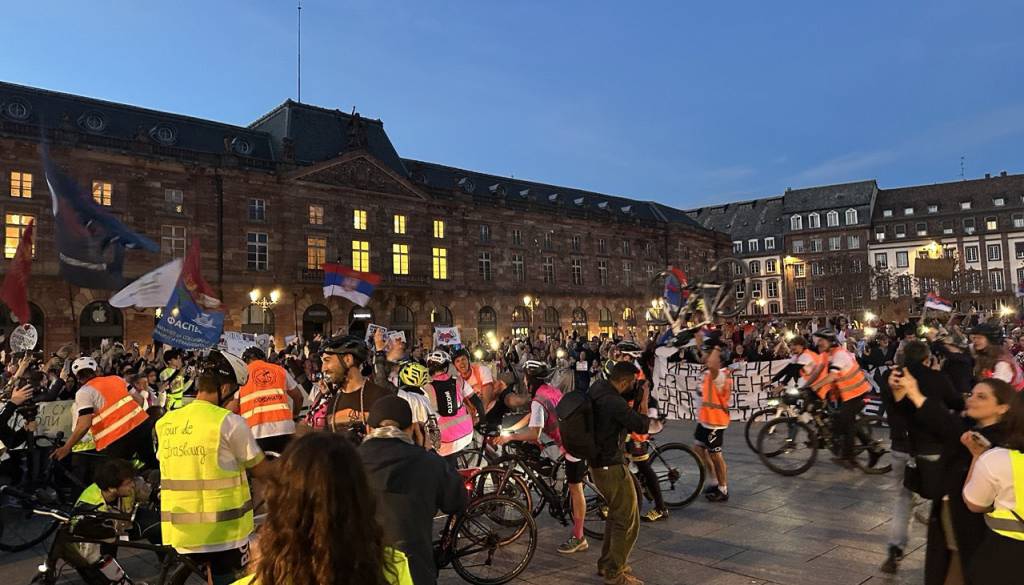 V središču alzaške prestolnice je srbske protestnike po poročanju francoske tiskovne agencije AFP z žvižgi, vzkliki in srbskimi zastavami pričakalo več sto ljudi. V množici je bilo tudi nekaj evroposlancev, med njimi slovenska poslanka Irena Joveva (Renew/Svoboda).