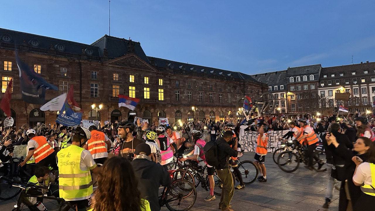 V Strasbourg je v torek zvečer s kolesi prispelo okoli osemdeset srbskih študentov in članov akademske skupnosti, ki želijo Svet Evrope in Evropski parlament opozoriti na študentske zahteve in trenutne razmere v Srbiji, poročajo tuje tiskovne agencije. V obeh institucijah imajo danes predvidena srečanja.