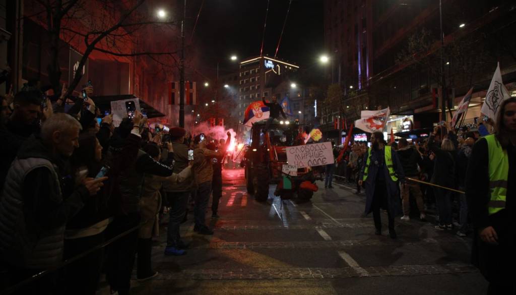 Povod so bili torkovi sinhronizirani napadi podpornikov SNS-a v dveh vojvodinskih mestih, kjer so protestnike obmetavali z ognjemeti, baklami in različnimi predmeti.