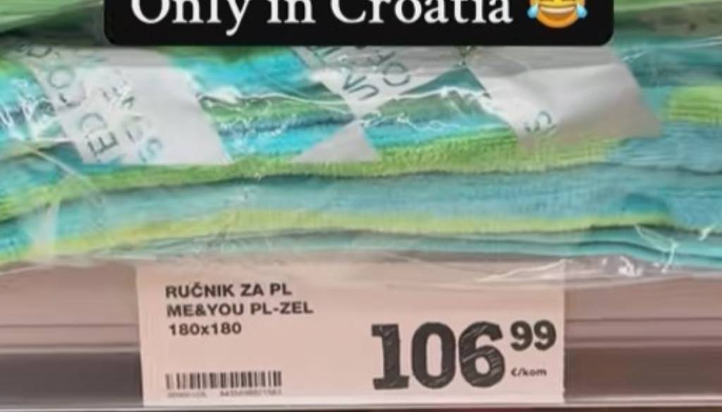Uporabnica TikToka je objavila posnetek iz dubrovniške trgovine, kjer naj bi brisača stala kar 106,99 evra. Cena je sprožila val odzivov.