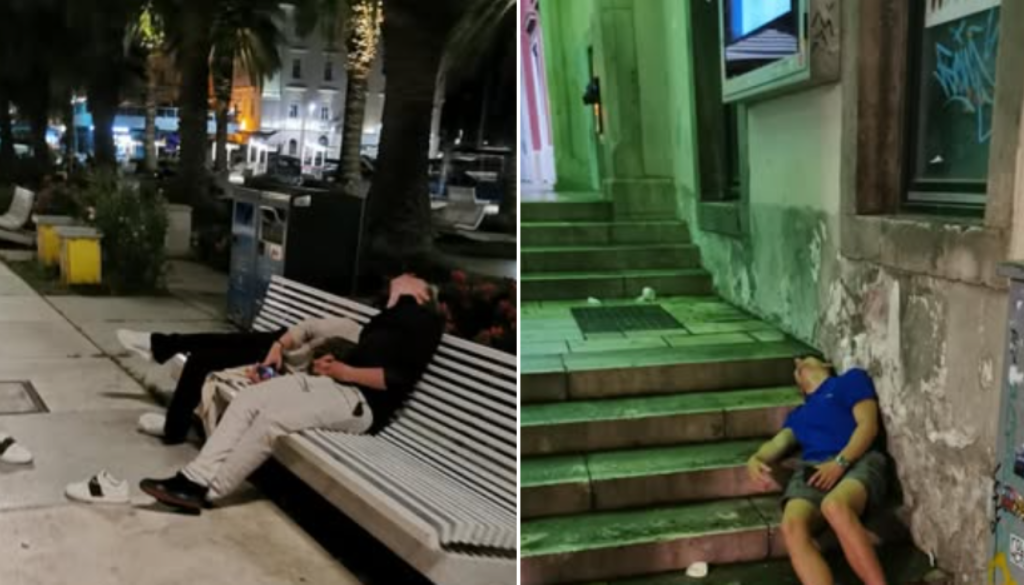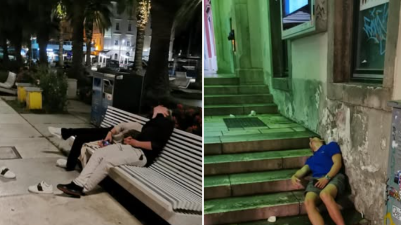 Na družbenem omrežju so objavili nočne posnetke iz Splita, na katerih množice pijanih turistov spijo kar na mestnih pločnikih, klopeh in stopniščih.