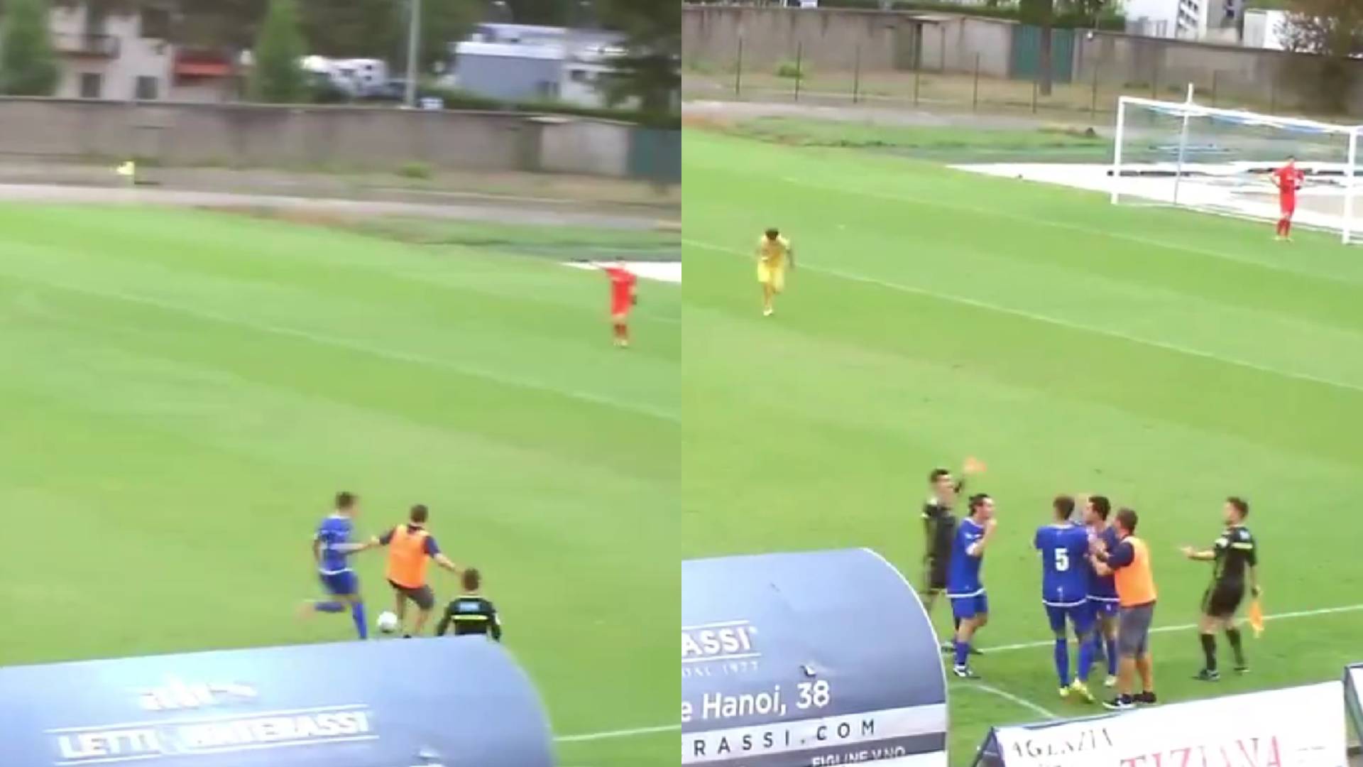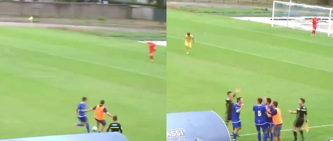 Ko je Pontassieve krenil v nevaren protinapad, je Guidotti stekel na zelenico in spotaknil nogometaša nasprotnega kluba.