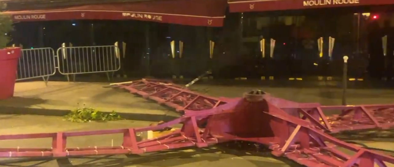 Po zadnji večerni predstavi, ki se je zaključila nekaj minut čez eno zjutraj, je s pročelja pariškega kabareta Moulin Rouge, ene največjih turističnih znamenitosti francoske prestolnice, odpadla slovita vrtnica.