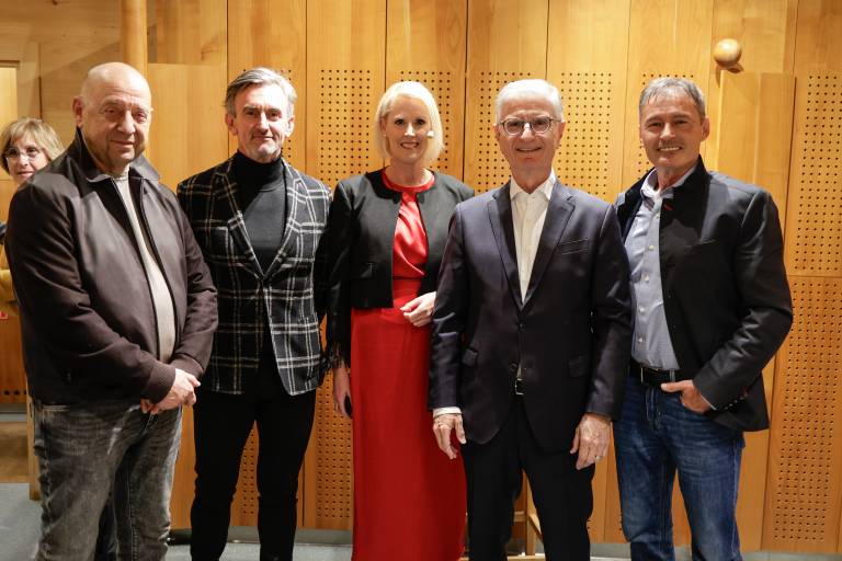 V skednju Škrabčeve domačije v Hrovači pri Ribnici je potekal pogovor z nagrajencema združenja Manager, Franjem Bobincem, nagrajencem za življenjsko delo na področju managementa in Markom Lukićem, managerjem leta 2024.