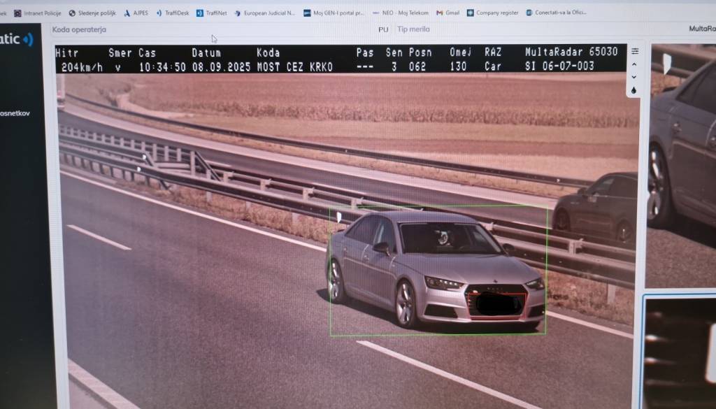 V ponedeljek, okoli 10.40, so policisti na mejnem prehodu Obrežje ustavili voznika avtomobila Audi A4 s slovenskimi registrskimi tablicami. Nekaj minut prej, ob 10.34, so ga zaznali na območju Čateža ob Savi, kjer je po avtocesti vozil kar 204 kilometre na uro.