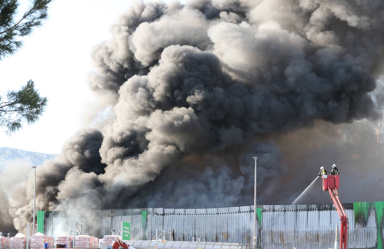 Območje Kaštel Sućurca, naselja v hrvaški Splitsko-dalmatinski županiji, je pretresla glasna eksplozija, kmalu zatem pa se je iz skladišča podjetja Pevex začel valiti gost črn dim.