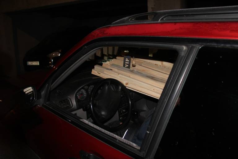 Močno pijan voznik je v osebnem vozilu prevažal nepravilno naložene deske.