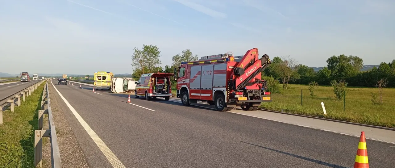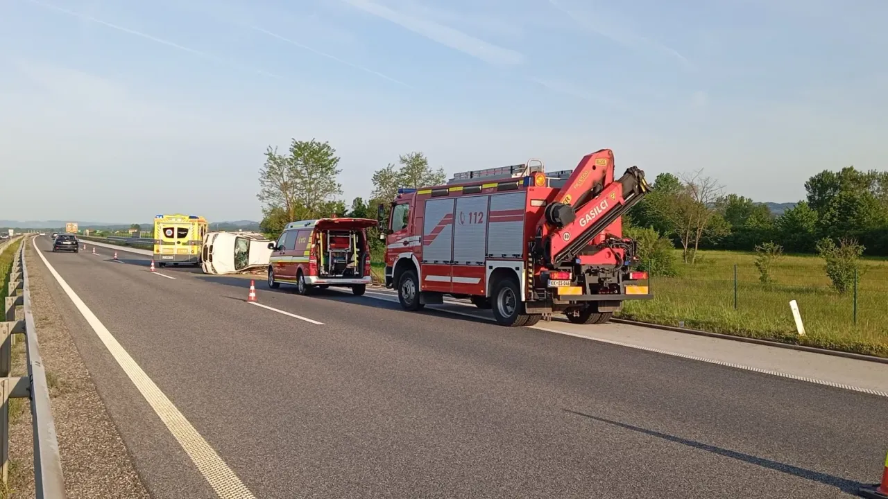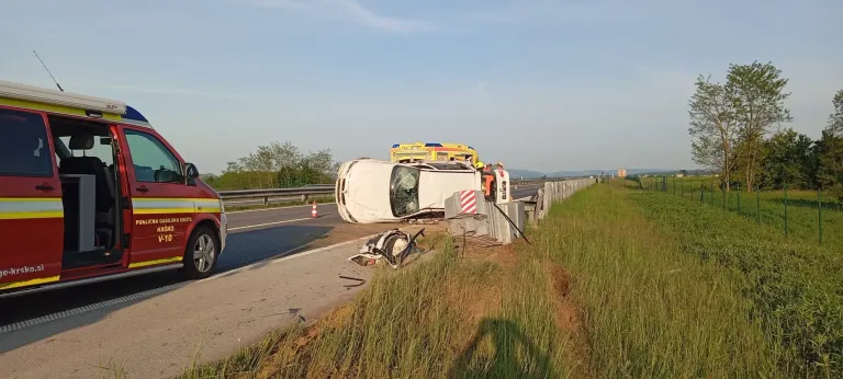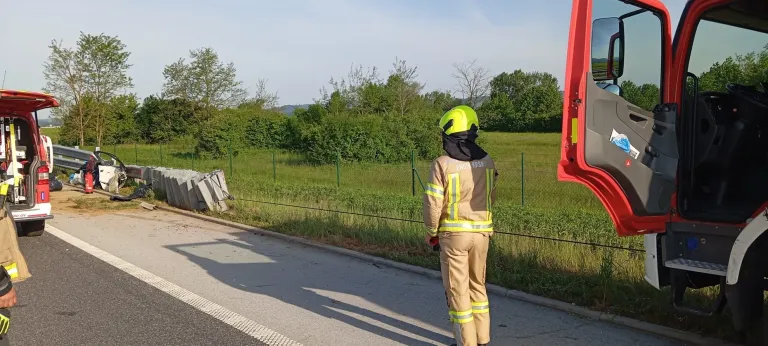 Gasilci Poklicne gasilske enote Krško so posredovali na avtocesti Brežice–Krško, zavarovali kraj nesreče in pomagali pri odstranitvi odbojne ograje
