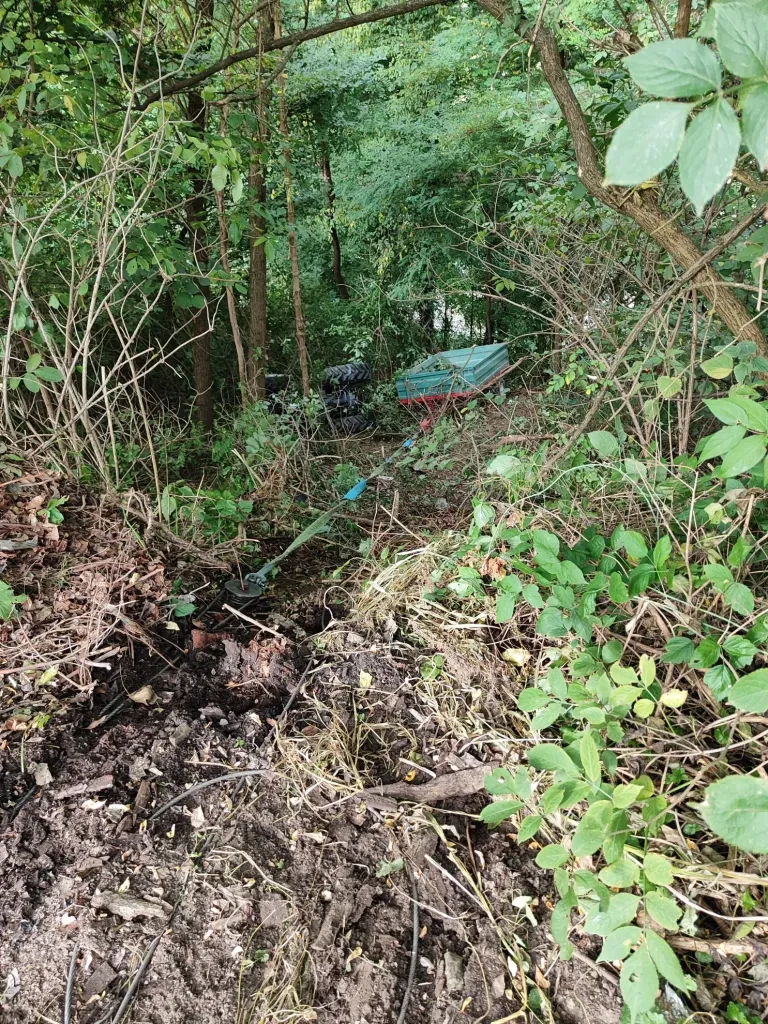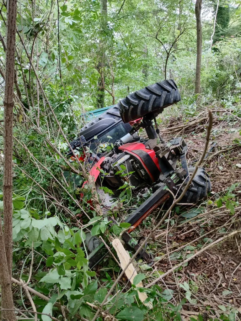 Po prihodu so ugotovili, da je poškodovani voznik traktorja že v oskrbi ekipe Nujne medicinske pomoči Brežice, medtem ko je traktor s prikolico zdrsnil po pobočju in obstal v goščavi.