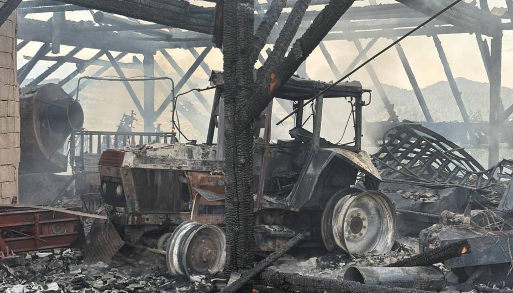 Zgornji, leseni del objekta (skedenj) je pogorel v celoti. Skupaj s skednjem je pogorel tudi starejši traktor, ter velik del kmetijske opreme.