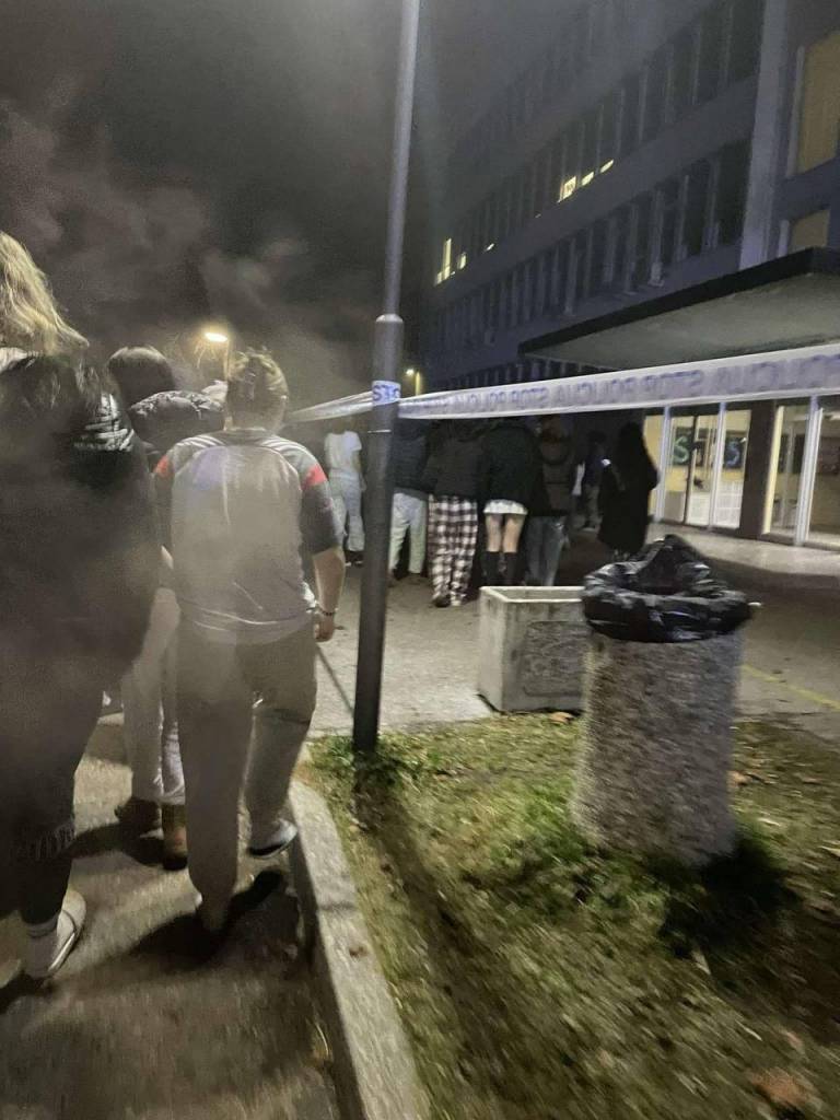 Evakuirali so se na lastno pest, pove. S hodnikov so odzvanjali klici, naj gredo ven; tako so se znašli pred dijaškim domom, izključno dijaki. Kakšne »uradne osebe« ni opazila.