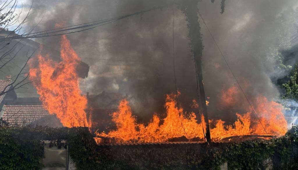 Letalo je pri padcu poškodovalo stanovanjsko stavbo, izbruhnil pa je tudi požar.