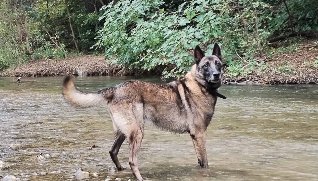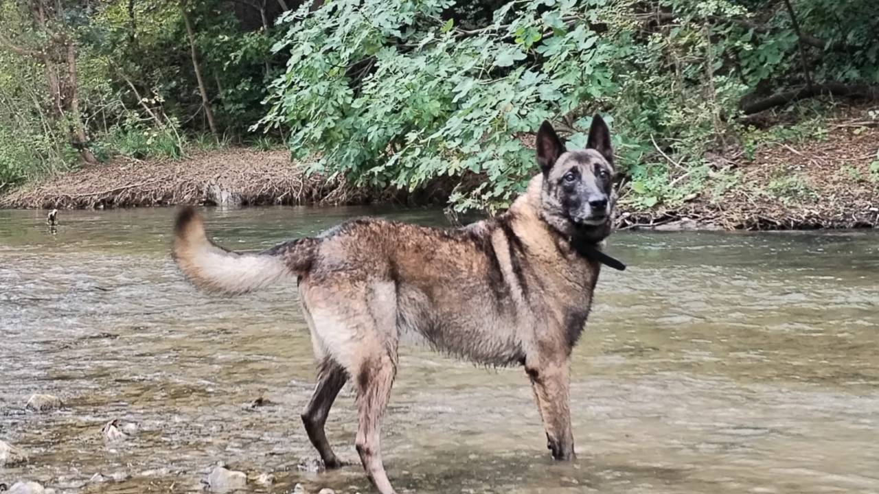 Pojasnjujejo, da gre za belgijskega ovčarja po imenu Lairy, upokojenega vojaškega psa s težko preteklostjo.